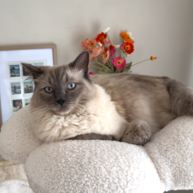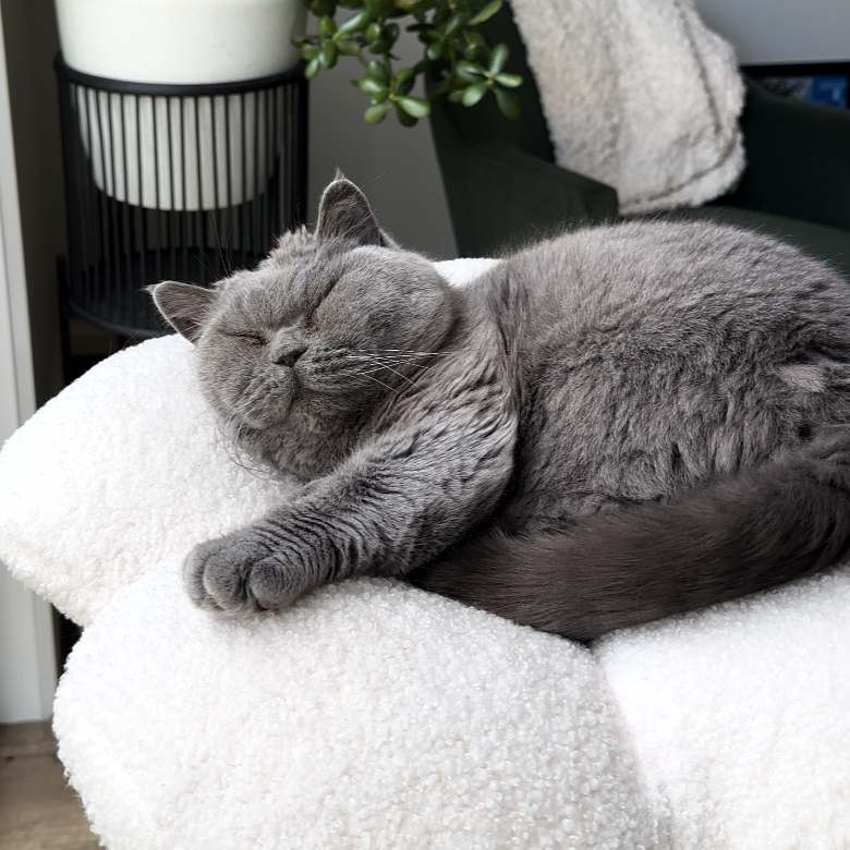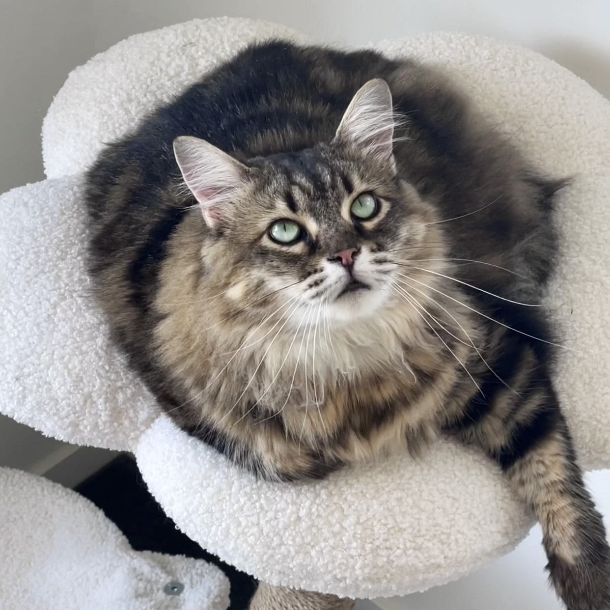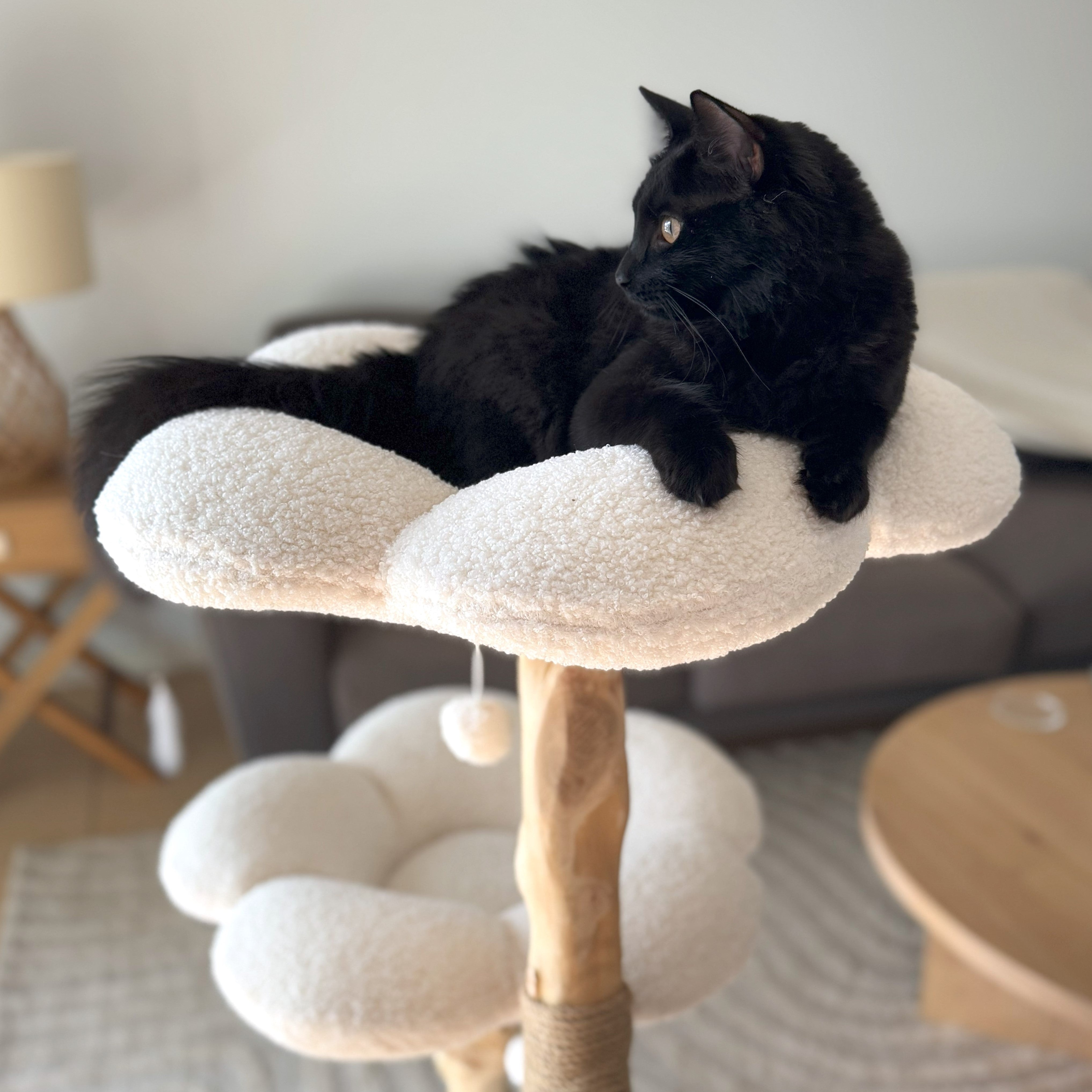 Maxi Blanc is our uniquely stylish cat tower, designed to blend seamlessly with any home’s interior thanks to its neutral tones. Featuring two plush flower-shaped platforms that gently cradle your cat, it creates a cozy retreat for sleepy or anxious kitties. Thoughtfully designed to inspire both play and relaxation, this cat tower includes a snug cat cave, a sisal rope scratcher, and a perfectly balanced leaf hammock—offering your feline a new space to explore and conquer.